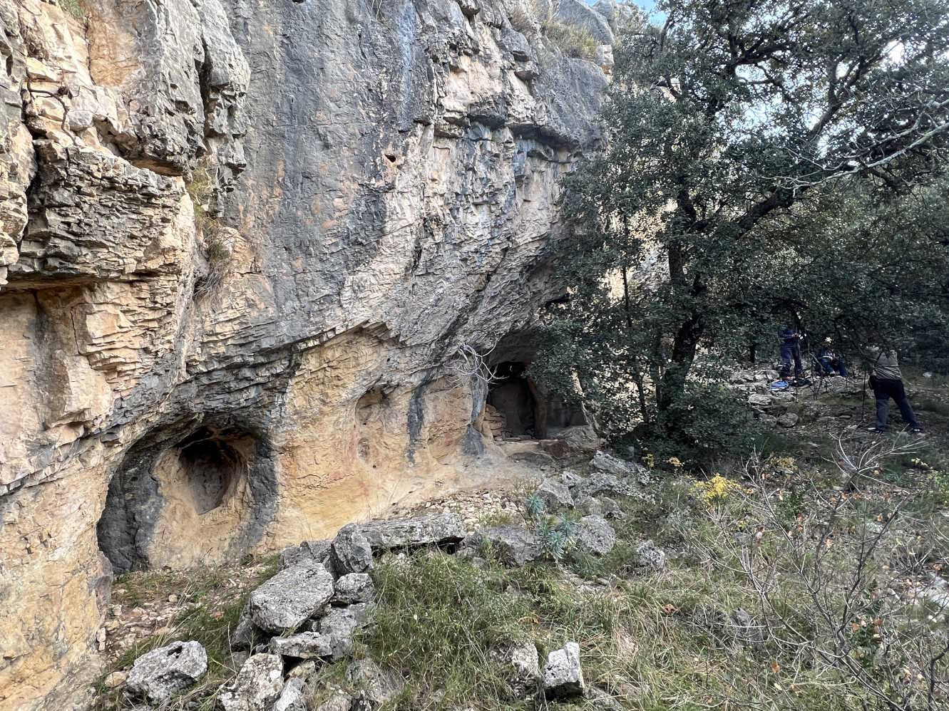 FITADA A LES COVES DE LA FIGUERA, DE LA RAMBLA I DEL ROURE. CATà 27 MARÇ 1344: “Dissapte vespra de Rams ques comptauevj kalendas aprilis Anno dominj M.CCC.XLiiij. En Joan de Sent Joan e en bernat muntserrat Jurats anaren ab en bernat muntserrat en Ramon cuch en bernat miro en Guiamo cuch e en Ponç de beylmunt e R. auinyo e en Berenguer mirales anaren a la cova de la figuera e de la Rambla e del Roure les quals son dins la heretat den Antoni cuch per vna apelacio ho coneguda que ffon feyta per en Nicolau lorens per clam que na ule feyt contra eyll lo dit Nantonj determinaren alur bon enteniment la sita coneguda e questio e per ço car es e cert que les dites coues son comunes estades tots temps de tot lo terme de Morella fitaren aquelles e les senyalaren e les seprengueren per sops del comu general present lo dit Antoni cuch en testimoni de la qual cosa ferenne aquesta memoria scrita per ma den Tomas lilet notarj.â€.