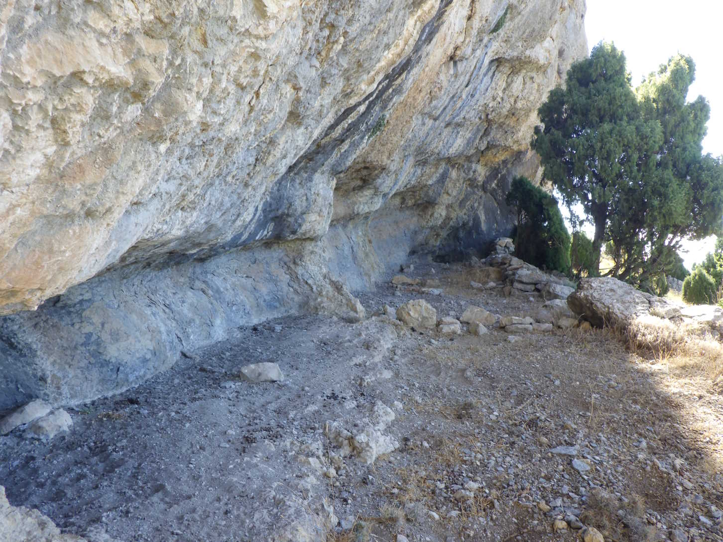 ![]() | Detalle de la covacha con los restos del murete de piedra en seco (septiembre/2025). |