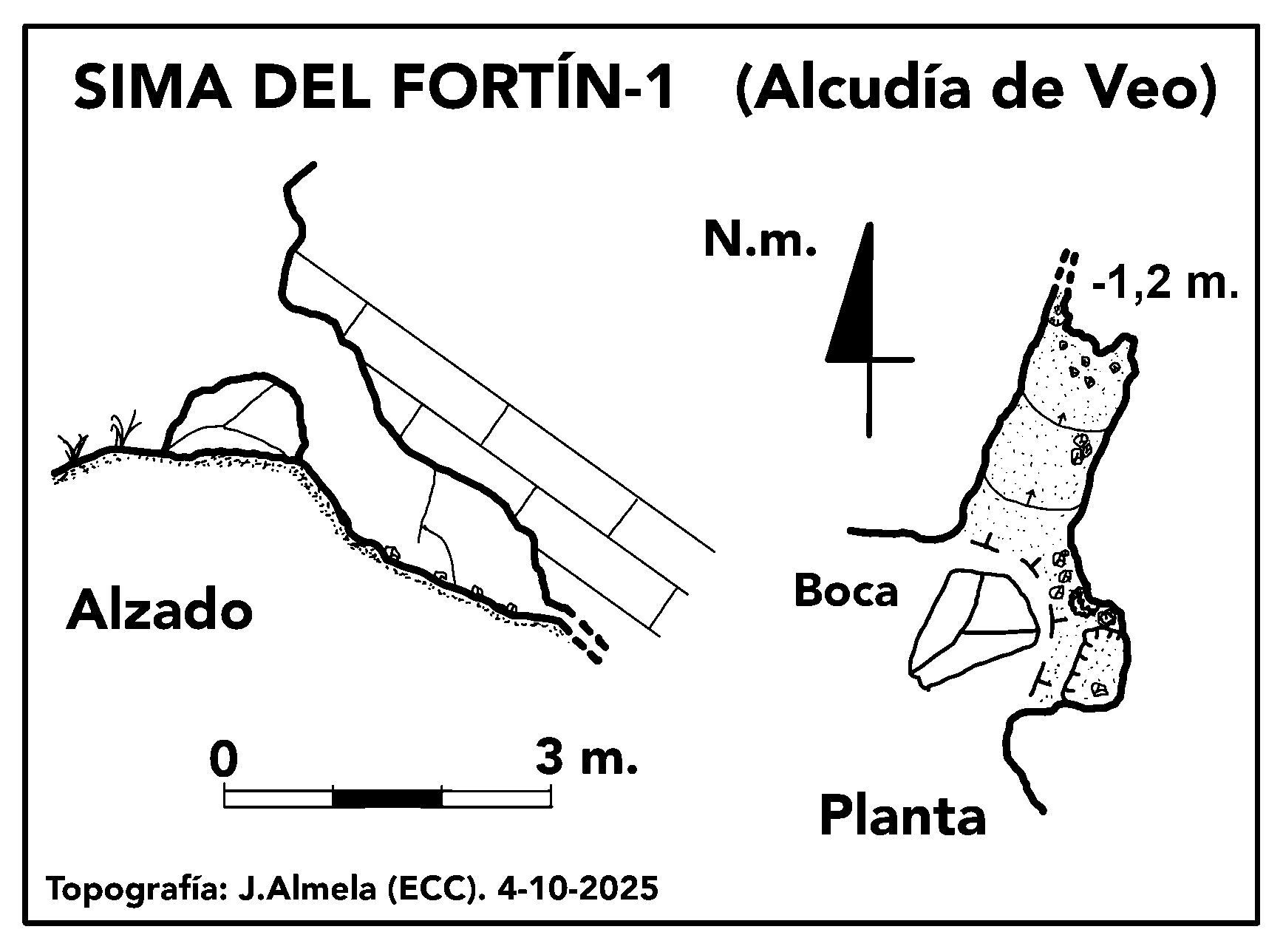 TopografÃa presentada en el post del 27/11/2025 del blog CAVITATS SUBTERRÀNIES: Revisión de las cavidades del FortÃn (Alcudia de Veo). |