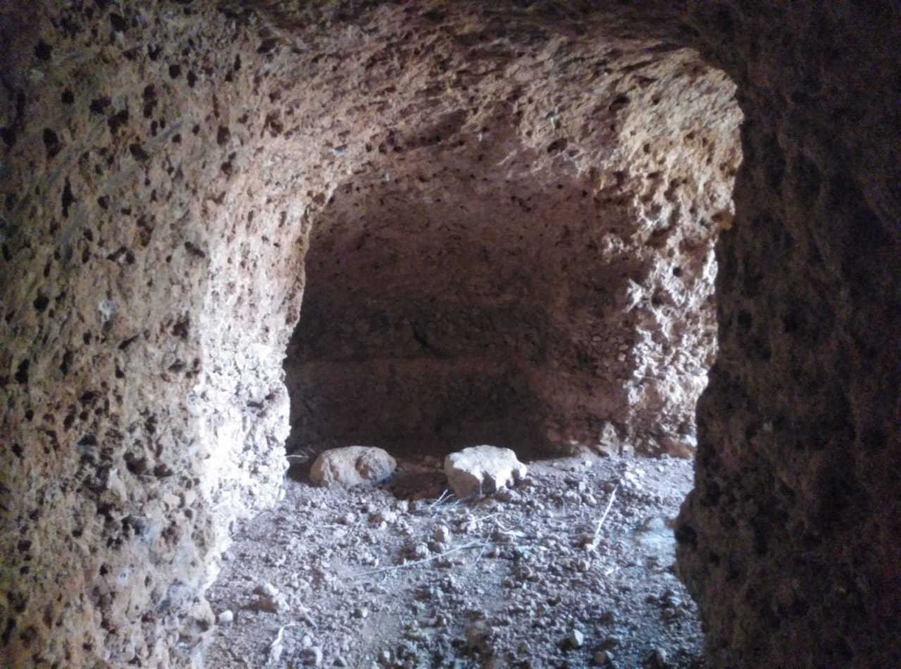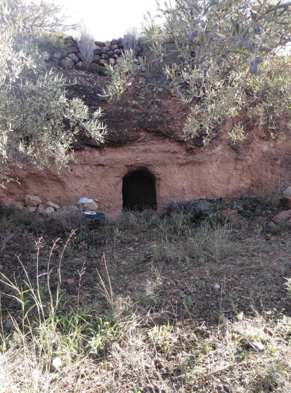 El refugio está excavado al fondo de un bancal, en la base de la pared de materiales relativamente blandos. Tiene planta en forma de 'T' no simétrica. En la misma pared hay al menos otras tres cavidades muy pequeñas (quizá pueda haber alguna más en la zona central de la pared, tras los materiales que allà se acumulan procedentes del desmoronamiento de la propia pared). Dimensiones de la boca: anchura de 0,80 metros por una altura máxima de 1,20 metros. Dimensiones interiores: muy uniforme en anchura y altura, conserva las de la boca en todo su desarrollo subterráneo. |