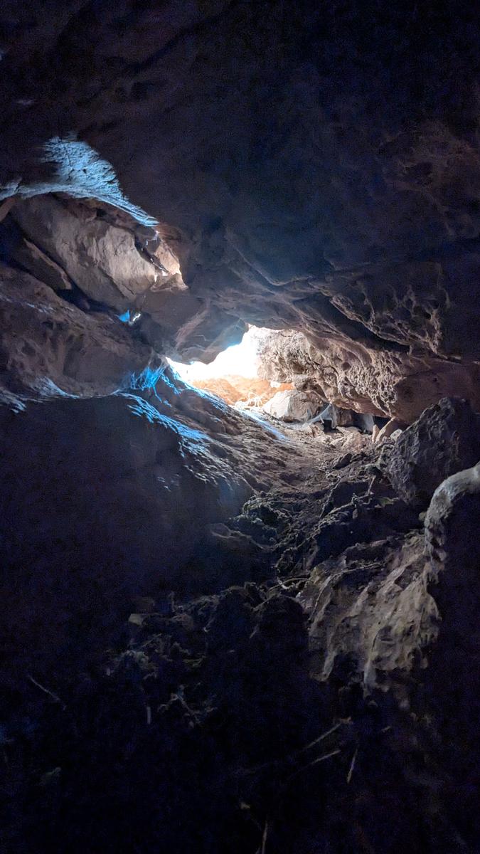 Boca de 7 metros de anchura que da paso a un abrigo inicial de 4 metros de visera, con una continuación en galerÃa de techo bajo de 24 metros de recorrido. Se trata de una cavidad bastante interesante al tratarse de dos cavidades diferentes. La primera es una balma erosiva sin importancia (apenas 4 metros de visera), con una pared exterior de piedra en seco para un aprovechamiento ganadero. Su formación es debida a una red de diaclasas maestras. La segunda es una surgencia, actualmente fósil con sección subcircular, en donde se aprecian muestras erosivas. La galerÃa sigue la misma red de diaclasas que la anterior, donde predominan las de direcciones N-20-E y S-55-E. En una visita realizada en diciembre de 2016 (Hèctor Cardona) se comprueba la existencia de una gran roca caÃda sobre la misma boca, lo que impide el paso a la galerÃa. La primera exploración espeleológica conocida fue realizada en 1979 por el Centre Excursionista Uixó. Por los materiales arqueológicos recuperados, parece que se trata de una cavidad sepulcral de la Edad del Bronce (II milenio a.C.). |