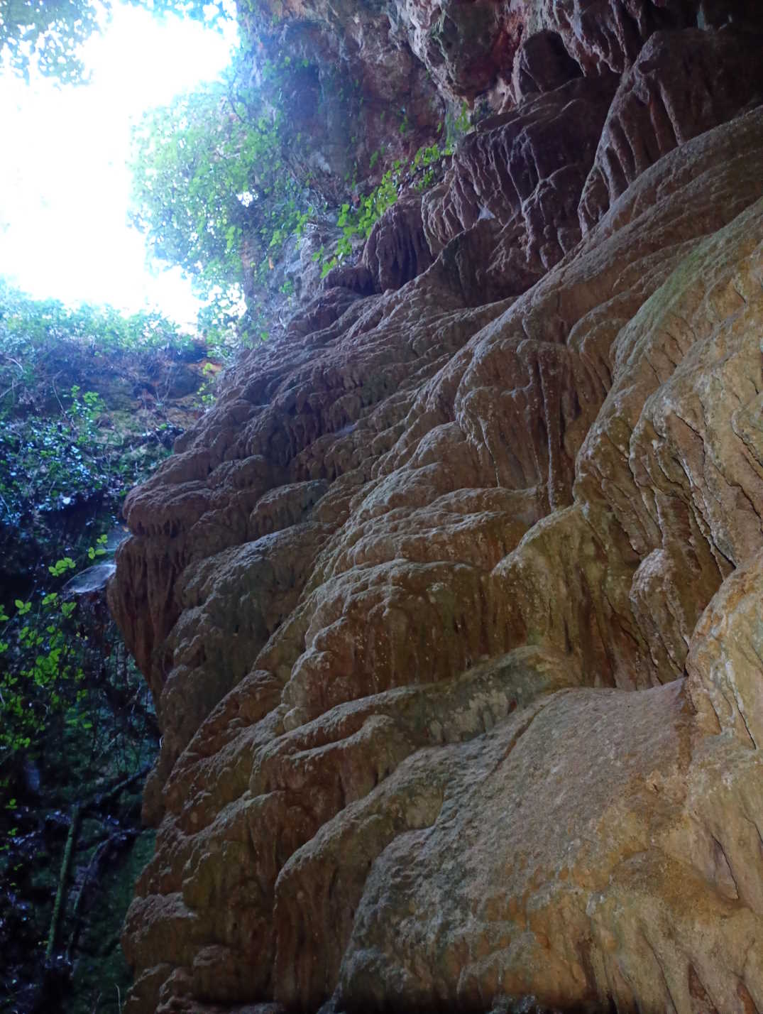 La boca presenta unas dimensiones de 6 x 4 metros, estando en una zona de mucha pendiente, en la que la parte superior de la boca queda 5 metros por encima de la zona inferior o cota 0 metros. Descendiendo desde la parte inferior, nos encontramos con un pozo de 8 metros que incide sobre una base de 8 x 6,5 metros. La base queda ocupada en gran parte por bloques, alcanzando un desnivel de -10 metros. En la base crecen algunas hiedras y otra vegetación en las paredes, aprovechando la humedad que proporciona la cavidad. En la pared sur destaca una gran colada de unos 3 metros de anchura por 7 metros de alto. También en las paredes se advierten algunas formas de disolución. Entre los bloques de la base se abre una continuación, donde por un resalte de 3 metros se puede descender en rampa, hasta una profundidad máxima de -14,3 metros. En esta parte inferior se observa un relleno de bloques y materiales hasta que obstruyen la base del pozo. En cuanto a la génesis de la cavidad, parece que se trata de un pozo de disolución en fase madura, donde la erosión exterior y evolución del pozo debió provocar un hundimiento de la zona de entrada, dejando en el exterior su gran boca. También debió dejar al descubierto la colada, que se formarÃa al fosilizarse el pozo antes del hundimiento y ampliación de la boca. El pozo de esta sima contrasta con otros pozos del macizo de Penyagolosa, que se encuentran en fase juvenil y que presentan una boca estrecha, abriéndose su sección unos metros más abajo. En la cavidad se nota el acondicionamiento estructural NE-SW, muy marcado en la zona de la boca y como se aprecia en la planta de la topografÃa, con la pared recta generada por una patente discontinuidad. |