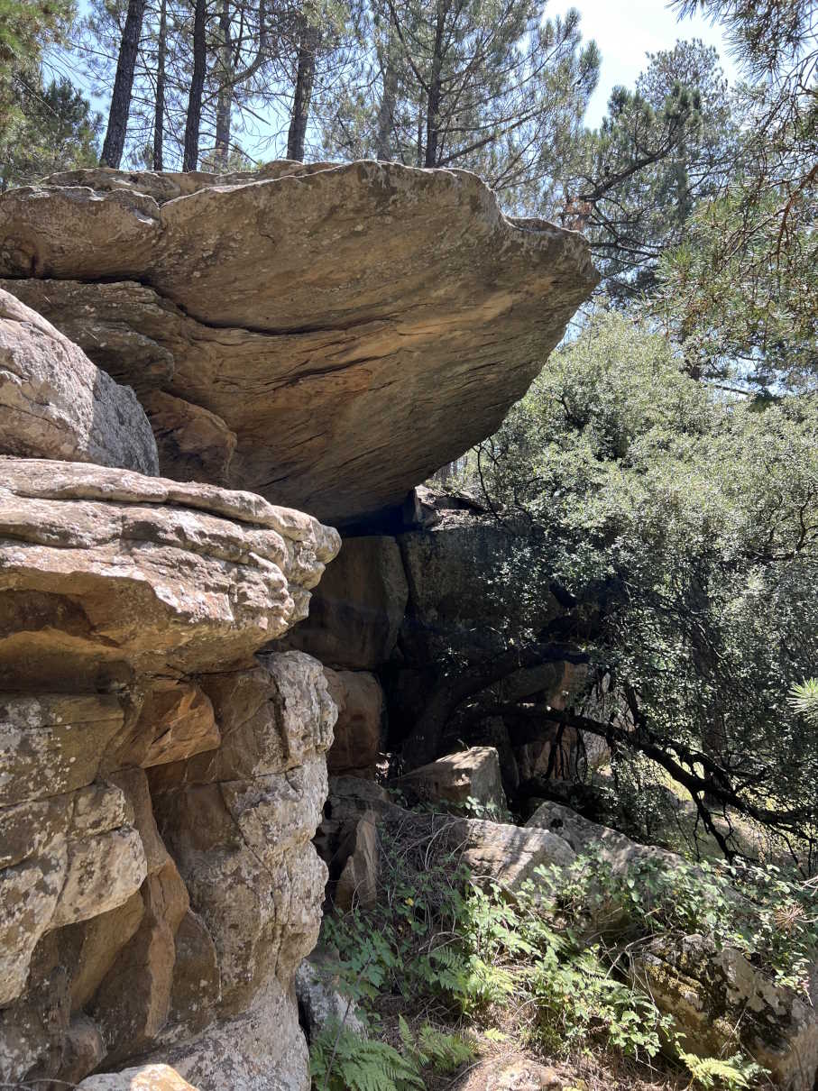 Cavidad formada por disgregación de la roca de arenisca. Boca orientada al sur. Tiene una longitud de 32 metros con una anchura máxima de visera de 8 metros, mientras que la visera está a más de 6 metros de altura. El conjunto presenta dos abrigos contiguos, totalizando un largo de unos 50 metros. Contiene los restos de una vieja cerca de piedra seca por su uso en pastoreo. |