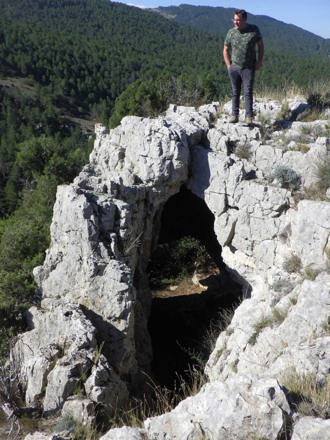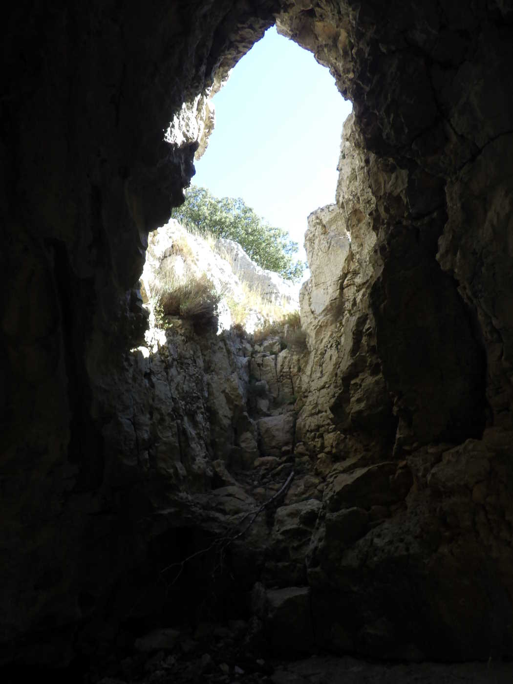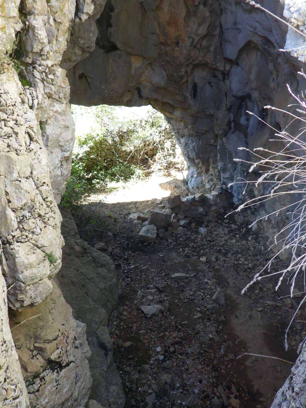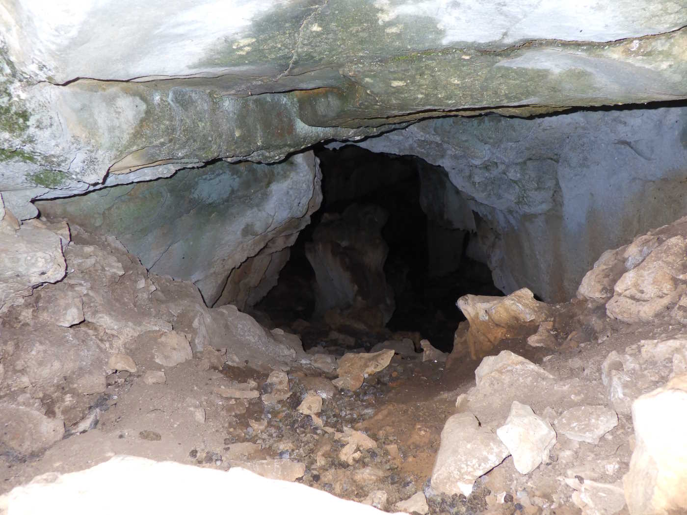 VestÃbulo ancho con 2 bocas de acceso, una grande y llana (4 x 2,5 metros), y la otra en un rincón del techo, más pequeña y en forma de sima de 4 metros de profundidad. Por una gatera se accede a una sala alargada desde donde hay continuaciones por gateras muy estrechas y largas. El vestÃbulo tiene 8 metros de largo por 5 de ancho; la sala tiene 14 x 10 metros. TenÃa buenas formaciones intactas por no ser conocida la parte interior, desobstruida por socios del C.E.C. el 16 de agosto de 1957. Muchos años después fue destrozada por un grupo que acampaba en el BARRANC DE L'AVELLANAR. Tiene construcciones de piedra seca, bien conservadas, por haberse utilizado en pastoreo. El topónimo de la cavidad tiene su origen en el agujero que presenta el techo del vestÃbulo. Alberga una pequeña colonia de murciélagos y es refugio nocturno u ocasional de murciélagos. TopografÃa del ARS del CEC fechada en 08/1964. A escasos metros de la Cova Foradà , se abre una fractura impenetrable, aunque no debe de tener mucha importancia ya que se puede ver que a los 3 o 4 metros hay sacos y basura. |
