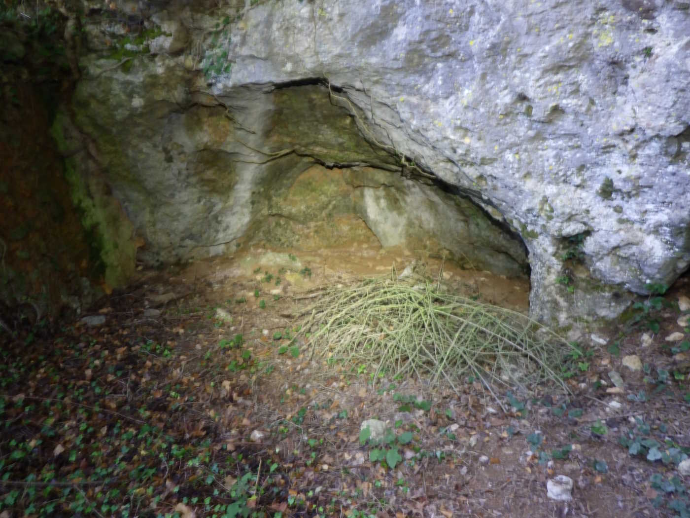 Se trata de una simple covacha de escasa visera, bajo la cual encontramos dos agujeros que constituÃan sendas surgencias, actualmente en estado totalmente fósil y de escaso recorrido practicable (2 metros como máximo y una sección de 0,7 x 0,6 metros). La cavidad está protegida por un buen muro de piedra en seco con una abertura para la puerta. |