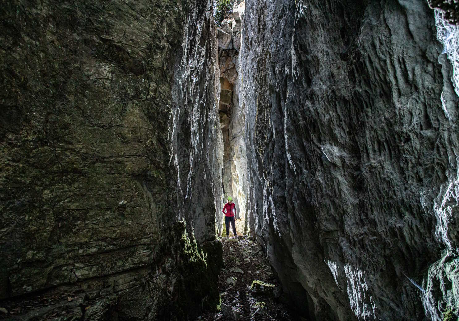 ![]() | Detalle del interior de estas grandes diaclasas. |