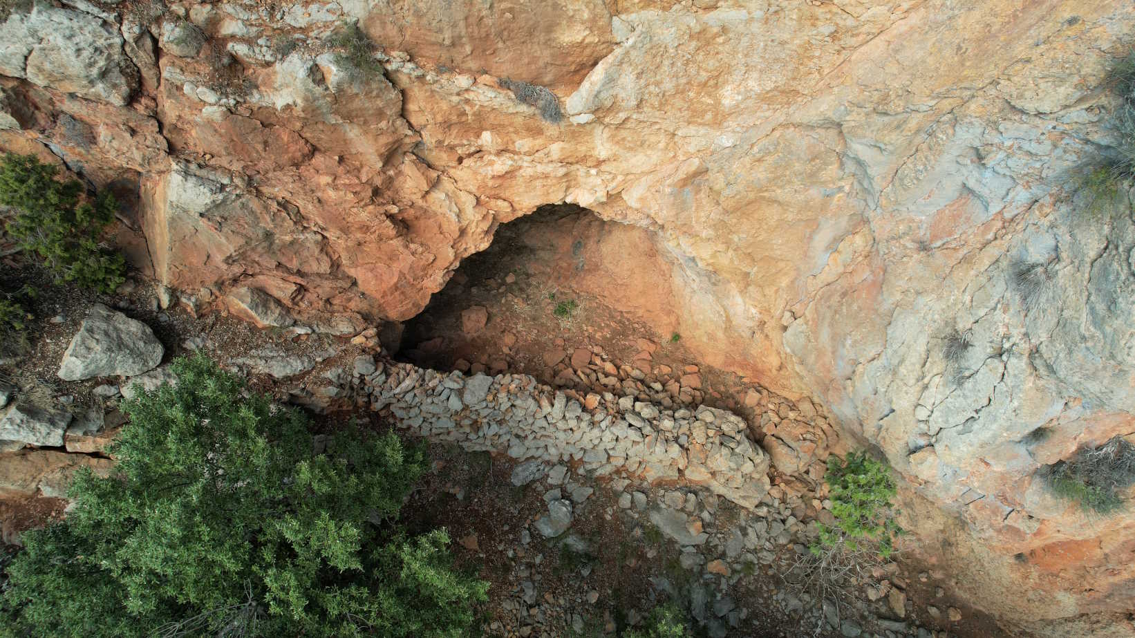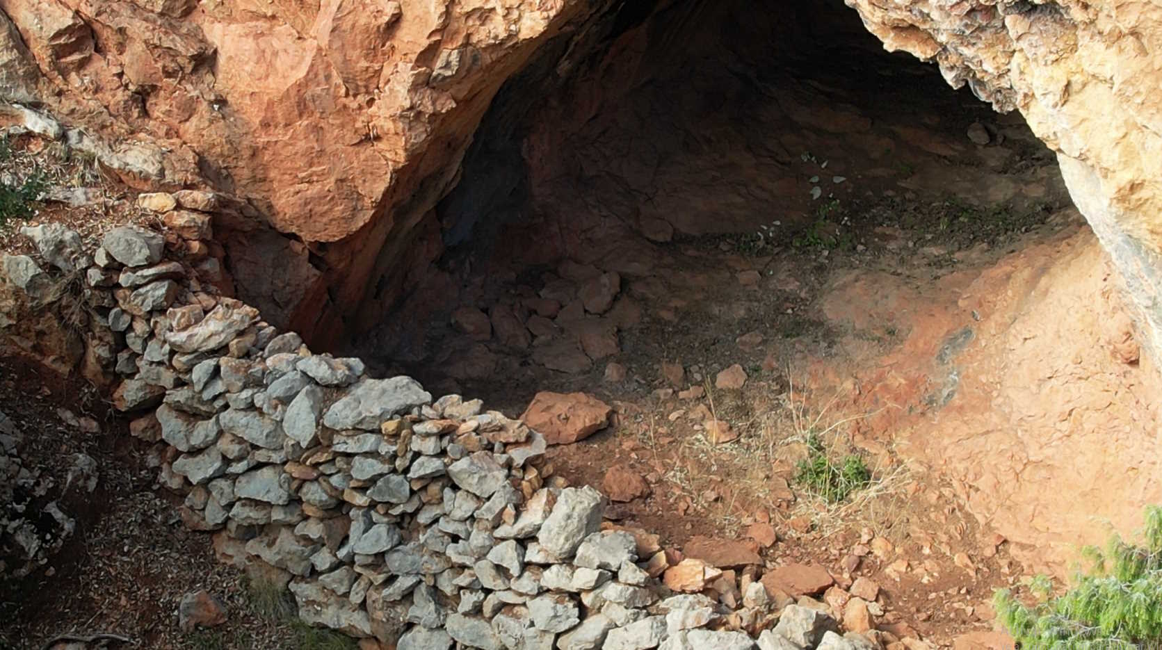 Presenta una boca de 5,5 metros de ancho por 3,9 de alto, con un muro de piedra en seco que la protege, quedando un pequeño espacio para entrar en su lateral derecho. La cavidad penetra 8 metros hacia el oeste con ligero ascenso, siendo el suelo de roca y estando la galerÃa generada sobre una pequeña discontinuidad que se distingue bien en su pared izquierda, con una inclinación de 50º. En esta cavidad guardaban ganado del cercano "Mas de Vela". Vecinos de esta masÃa afirman que no se denominaba con ningún nombre en concreto. |