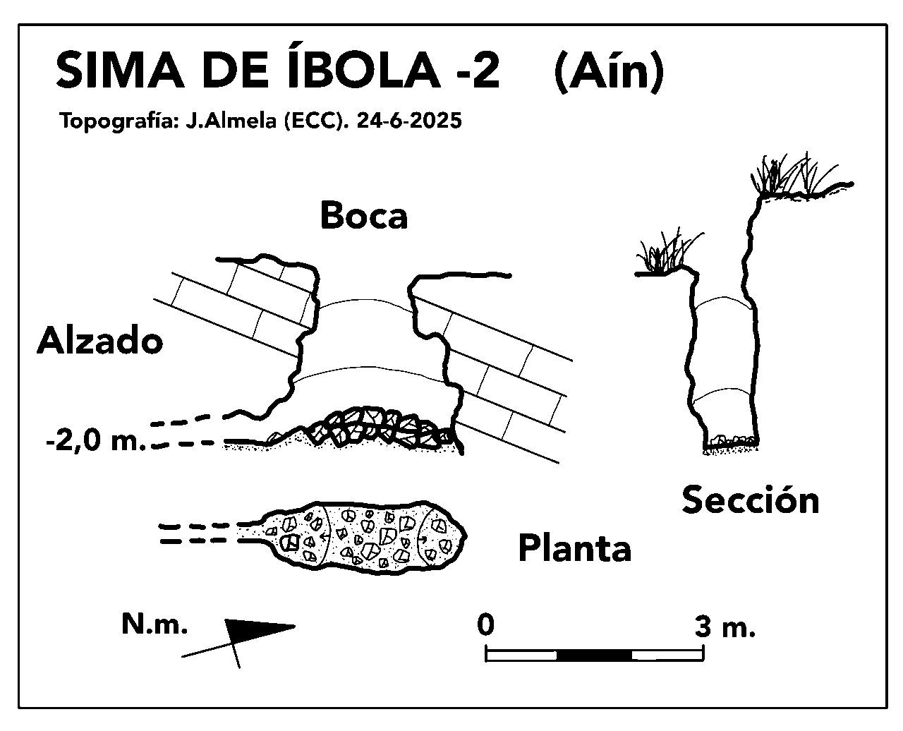 | Recorrido Real: 4 m. | Recorrido en planta: 2 m. | Profundidad: -2 m. |
