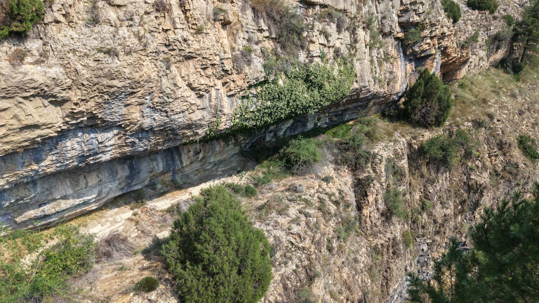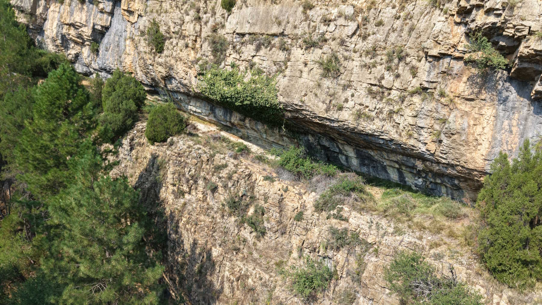 Se trata de un largo y vistoso abrigo colgado en plena pared del margen izquierdo del Riu Sec / Riu Montlleó. Se accede por su extremo sur, casi a nivel del bancal, y poco a poco el estrato donde se abre la cavidad va quedándose colgado a considerable altura. Su longitud total puede rebasar los 80 metros, aunque su visera no excede de los 5 / 6 metros en ningún punto. No se observan restos claros de construcciones de piedra en seco bajo su visera. |